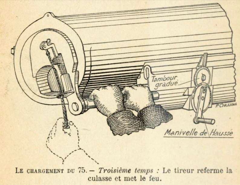 L’ingénieuse culasse Nordenfeldt du canon de 75 est des principaux éléments autorisant une cadence de tir élevée.
